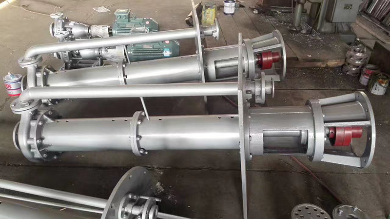 液下化工泵的形式為長軸立式離心泵,與介質接觸部分采用鑄鋼或不銹鋼制造,根據客戶要求液下深度由0.5m-6m不等,工作部分淹沒與液體中,具有使用范圍廣,效率高,無需灌液即能輸送,由于泵運轉產生的軸向力及徑向力分別由液上部分的滾動軸承和液下的滑動軸承支撐,因此運行寧靜無噪音,是集環保節能的高科技產品。